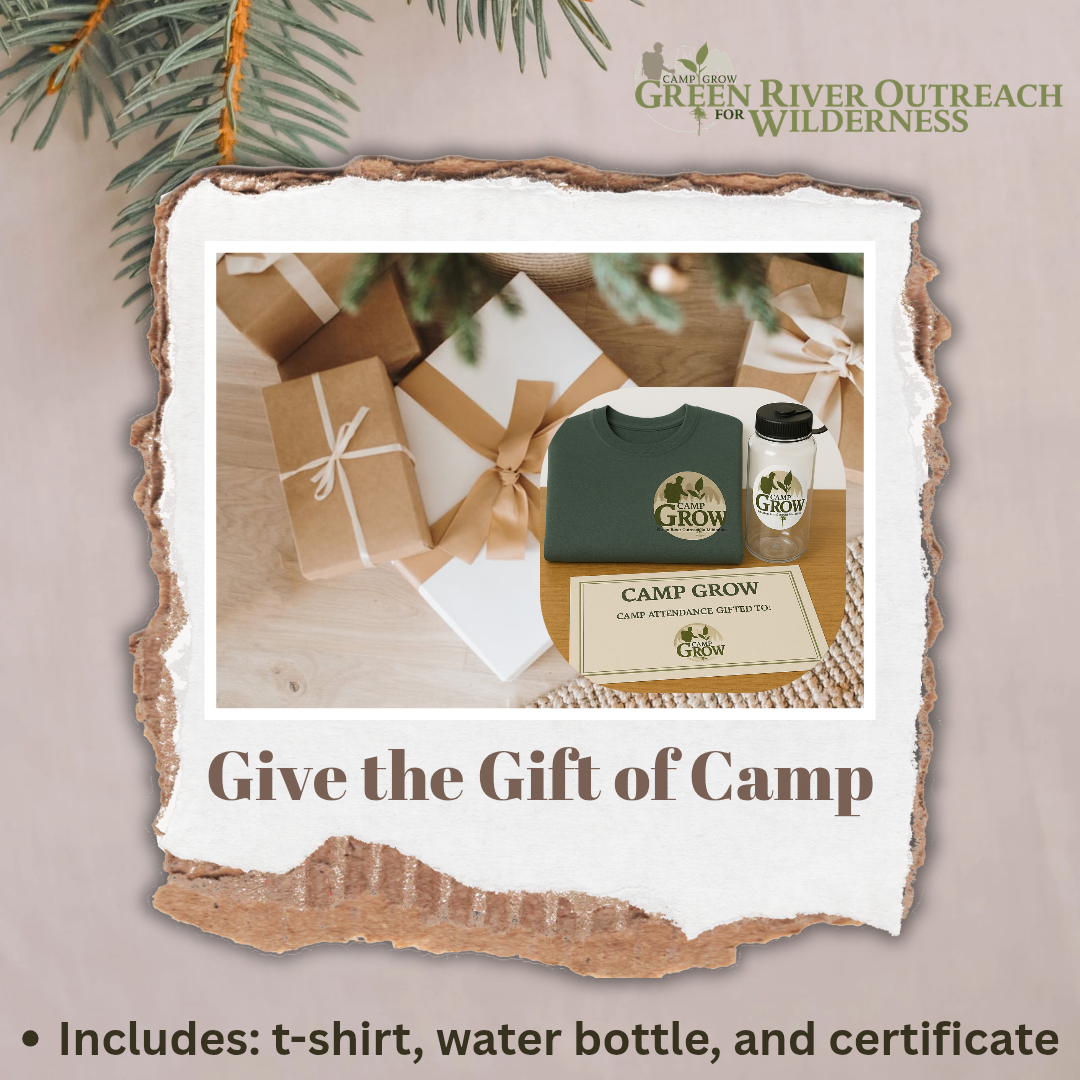 Each Camp Gift comes gift-wrapped for your camper’s occasion and includes a Camp GROW T-Shirt, Water Bottle and 2026 Camp GROW Certificate. Once your Camper opens his/her gift, their parent/guardian simply follows the instructions to register for one of our available camp dates.